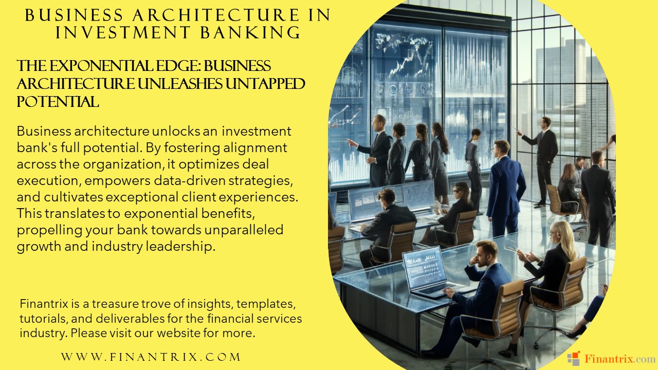 Business architecture unlocks an investment bank’s full potential. By fostering alignment across the organization, it optimizes deal execution, empowers data-driven strategies, and cultivates exceptional client experiences. This translates to exponential benefits, propelling your bank towards unparalleled growth and industry leadership.